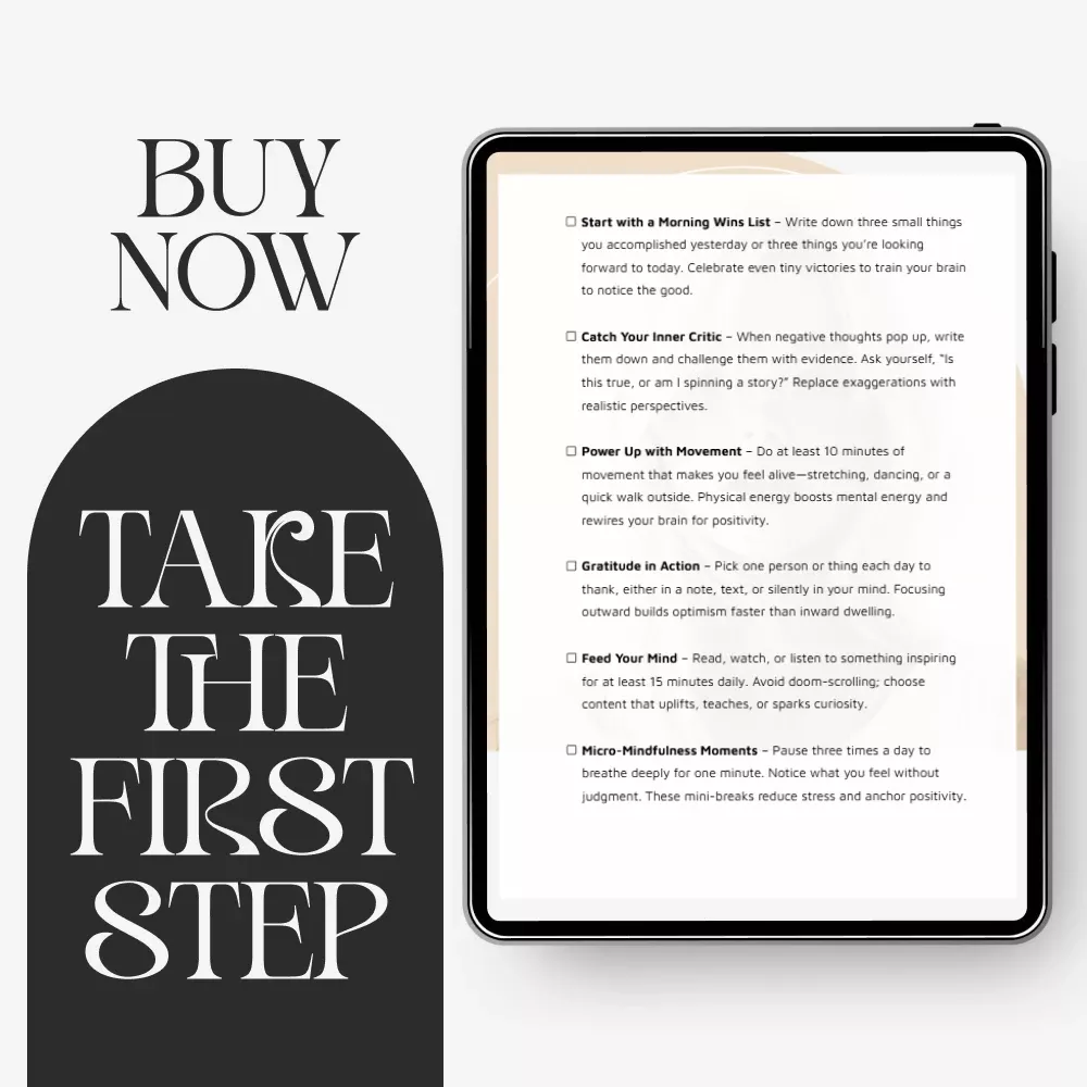 Unlike generic mindset resources, 10 Steps to a Brighter Mindset focuses on small, realistic actions rather than overwhelming life overhauls. Each step, from Start with a Morning Wins List to End With a Highlight Reel, is designed to build momentum through achievable daily wins. It combines reflection, positivity, movement, gratitude, and visualization in one cohesive system you can adapt to your lifestyle. This isn’t just motivation — it’s a repeatable mindset framework.