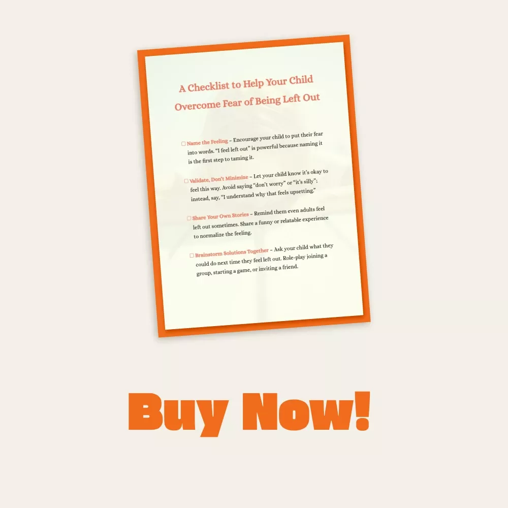 Stop feeling helpless when your child feels left out. This digital checklist gives you the tools to provide real, lasting support. It’s an immediate download, so you can start making a difference in your child’s life within minutes. Click “Add to Cart” now to download your checklist and begin the journey toward a more confident, resilient, and happy child today!