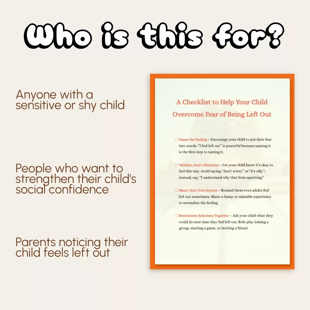 When you download this guide, you’re not just getting a file—you’re getting a partner in parenting. This is your essential tool for parents looking for a proven method on how to handle child’s fear of being left out. It’s perfect for parents of children in preschool and elementary school, caregivers, grandparents, and anyone who wants to support a child’s social and emotional development.