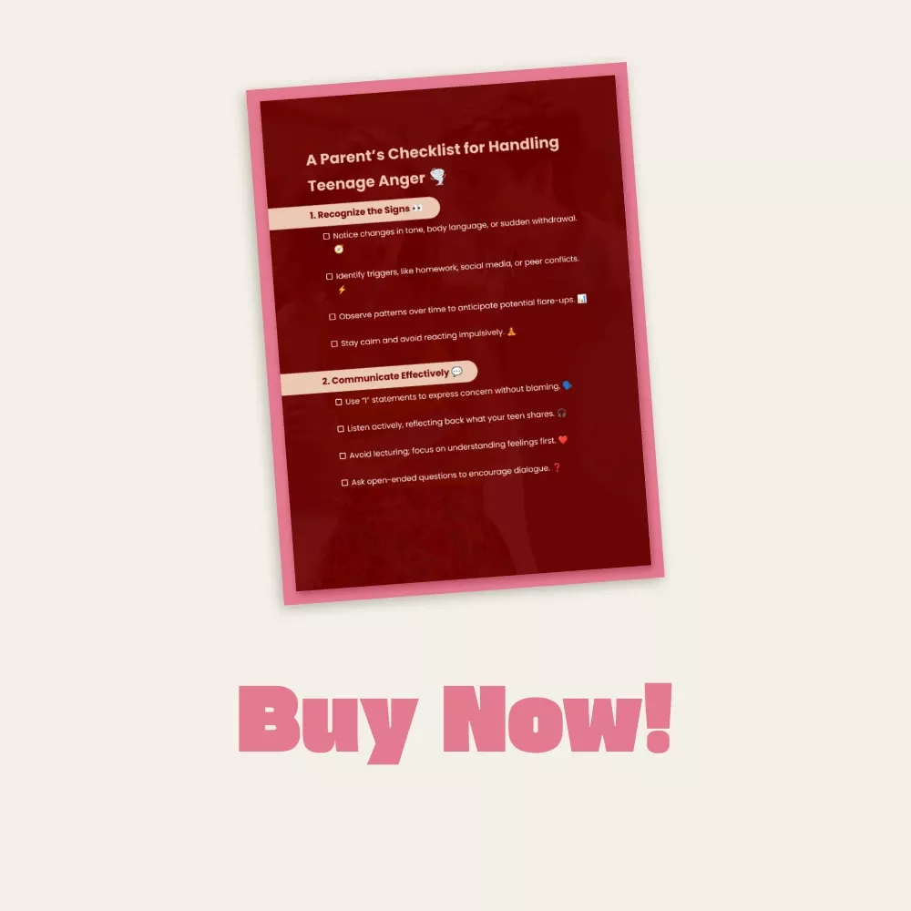 Transform tension into trust with this easy-to-use, beautifully designed checklist. Download A Parent’s Checklist for Handling Teenage Anger today and start building stronger, calmer, and more connected relationships with your teen. Your guide to peace of mind is just one click away—get your instant digital download now.