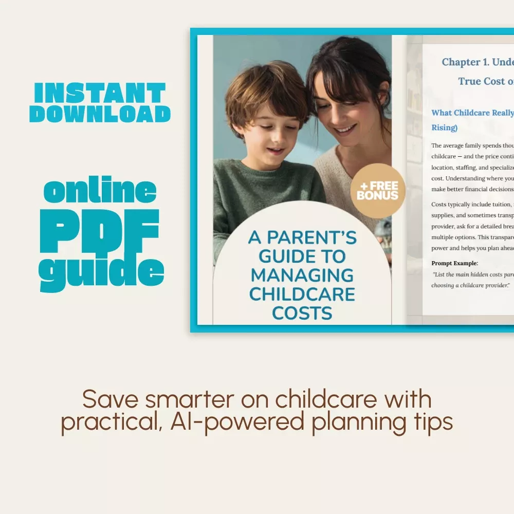 Rising childcare expenses can feel overwhelming—but you don’t have to navigate them alone. A Parent’s Guide to Managing Childcare Costs is your complete, easy-to-follow roadmap for understanding, planning, and reducing childcare expenses without compromising your family’s well-being. Designed for modern parents juggling work, care, and financial responsibilities, this digital guide helps you take back control with practical tools, AI-powered tips, and real-world examples of how to manage childcare costs effectively.