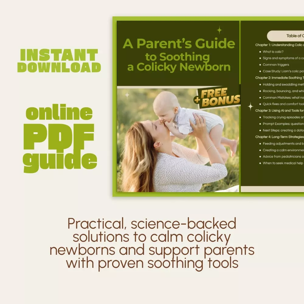 Bring peace back into your home and confidence into your parenting journey. Download A Parent’s Guide to Soothing a Colicky Newborn today and learn how to soothe a colicky newborn with love, patience, and proven methods that truly work.