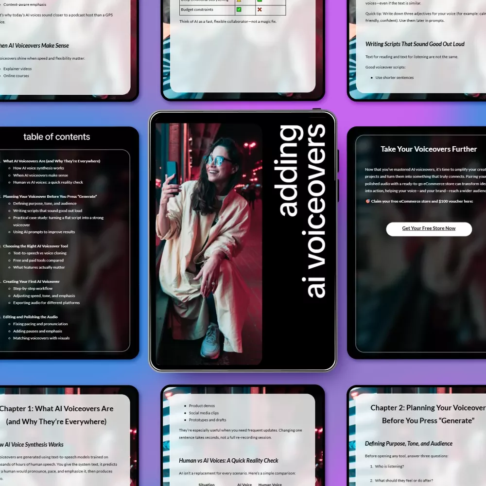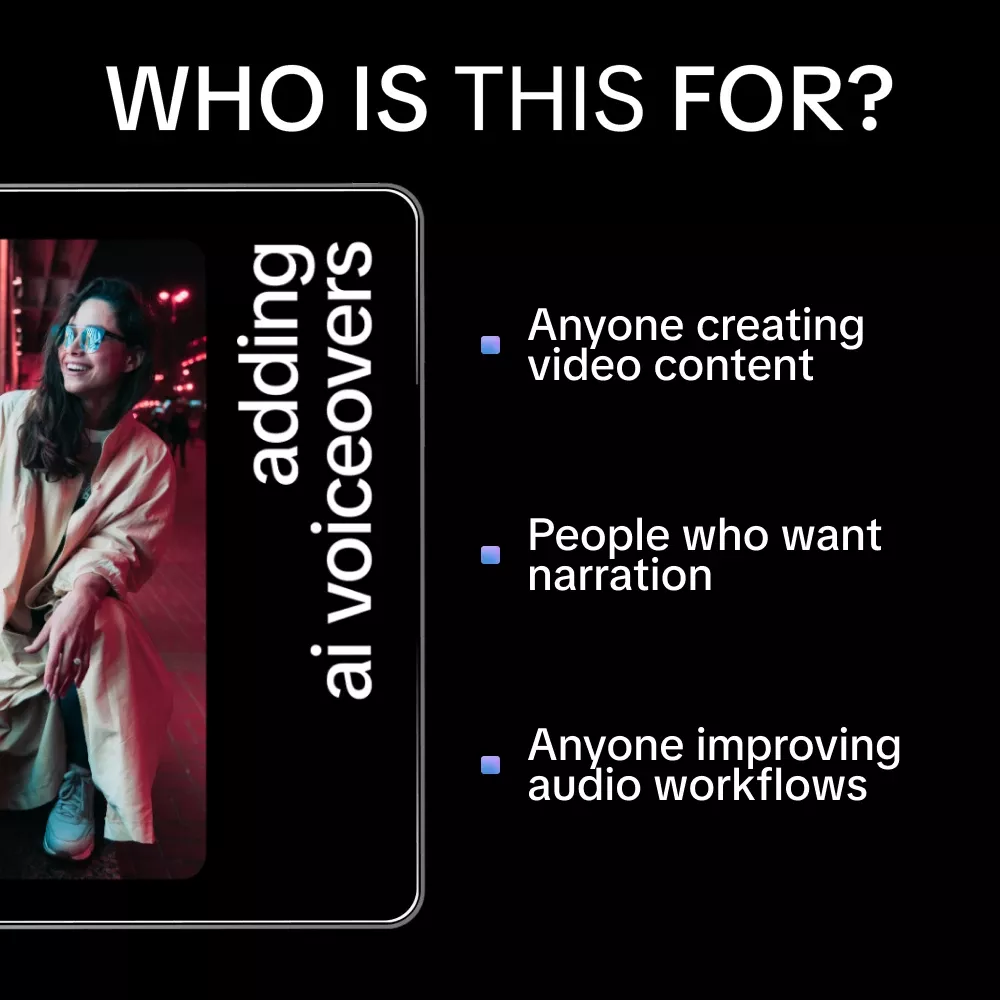 This ebook is ideal for content creators, educators, marketers, freelancers, and small business owners who want to learn how to add voiceovers using ai tools without technical overwhelm. No prior audio or AI experience is required.