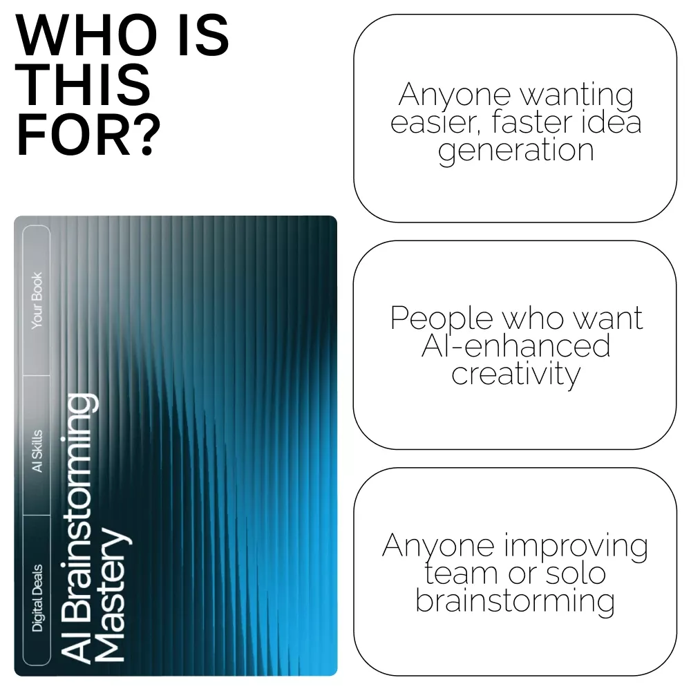 This resource goes beyond vague advice—it gives you a structured, easy-to-apply system for using AI effectively. Unlike other digital resources, AI Brainstorming Mastery combines eBook depth with checklist simplicity, making it practical for real-world use. It’s designed for anyone who wants to level up their creativity, from individuals to teams, using AI with clarity and purpose.