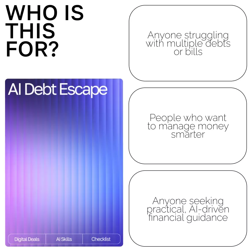 This digital checklist is perfect for anyone who wants a smarter, tech-driven way to eliminate debt. Whether you’re a student, parent, freelancer, or simply tired of living paycheck to paycheck, AI Debt Escape helps you take control with ease.