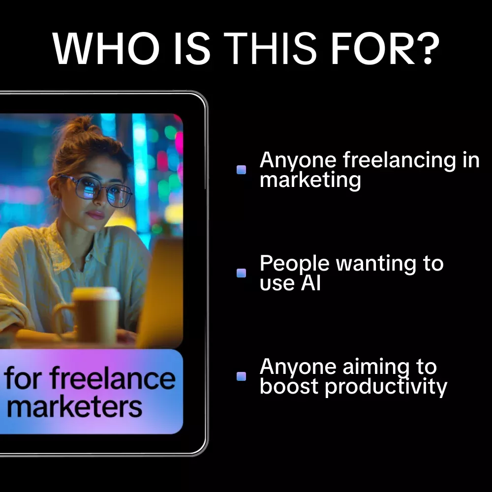This eBook is perfect for freelance marketers, solo entrepreneurs, and digital creators who want to work smarter, not harder. If you’re looking to boost productivity, improve creativity, and stay ahead in a competitive market, AI for Freelance Marketers is your go-to resource.