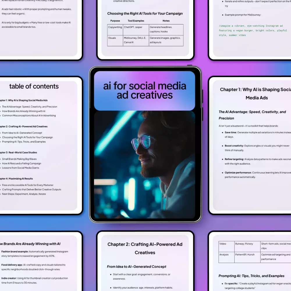 Inside this guide, you’ll discover practical strategies, step-by-step instructions, and real-world examples that make AI approachable and actionable for anyone in advertising or marketing. From generating concepts to crafting perfect prompts, this resource is your roadmap to creating high-performing social media ads efficiently.