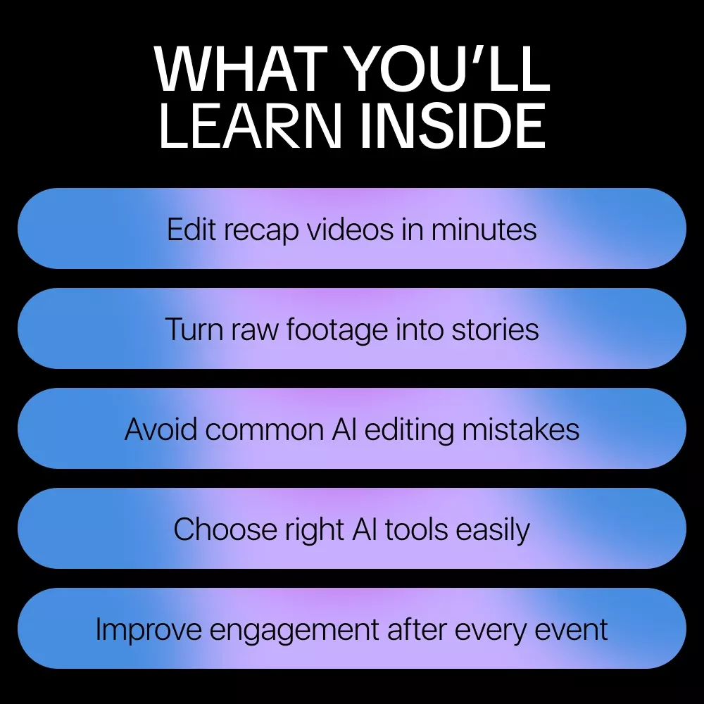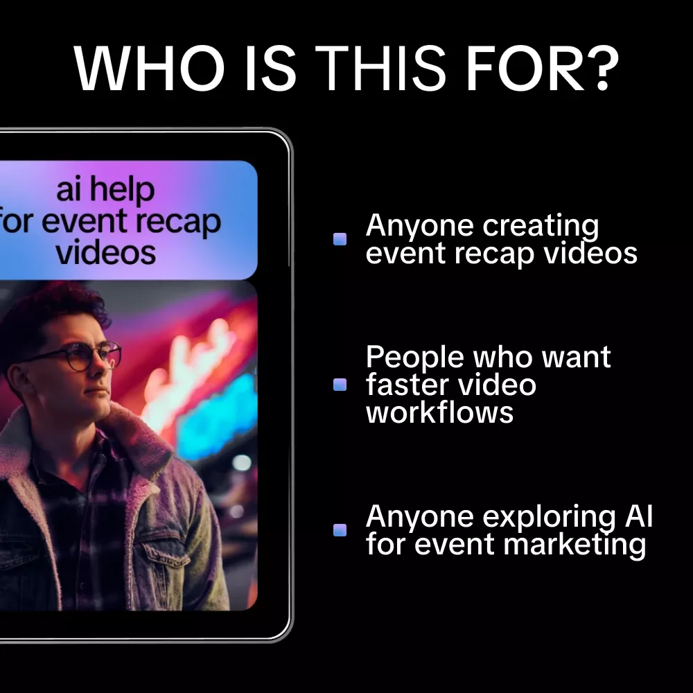 This guide is perfect for event marketers, content creators, videographers, social media managers, and business owners who want faster turnaround times and higher-quality recap videos. If you’re curious about AI but want practical direction, this guide was made for you.