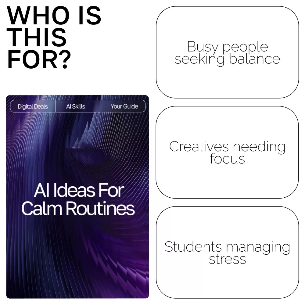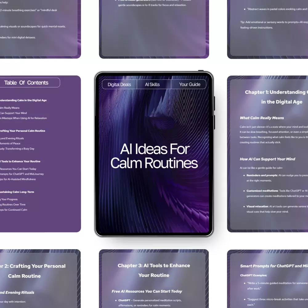 Quiet your mind, simplify your days, and create lasting balance with AI Ideas for Calm Routines. Download your guide today and explore powerful yet gentle ways to incorporate AI suggestions for calm routines into your life — one mindful moment at a time.