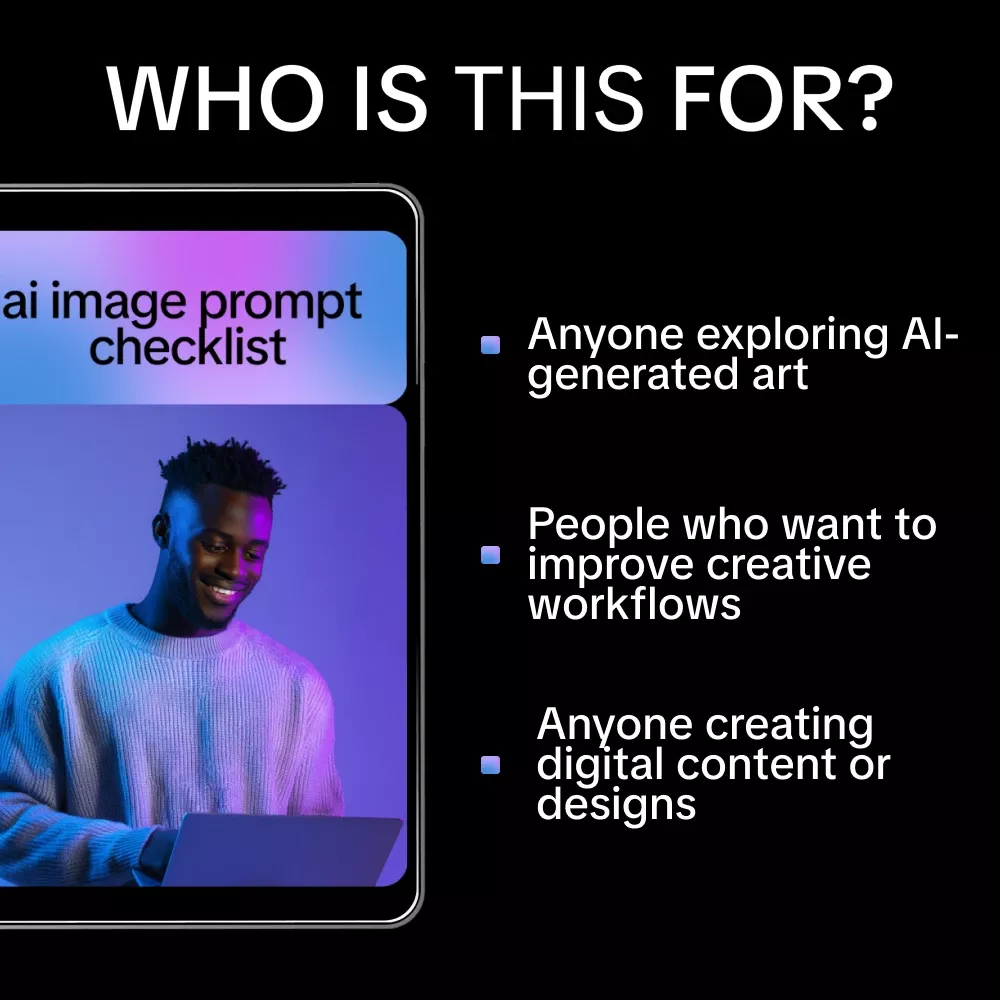 Unlike other digital resources, the AI Image Prompt Checklist is concise, actionable, and designed for real-world results. It breaks down complex AI prompting techniques into simple steps, providing a practical roadmap from start to finish. With this guide, you don’t just get tips—you get a tested framework to consistently generate amazing AI images.