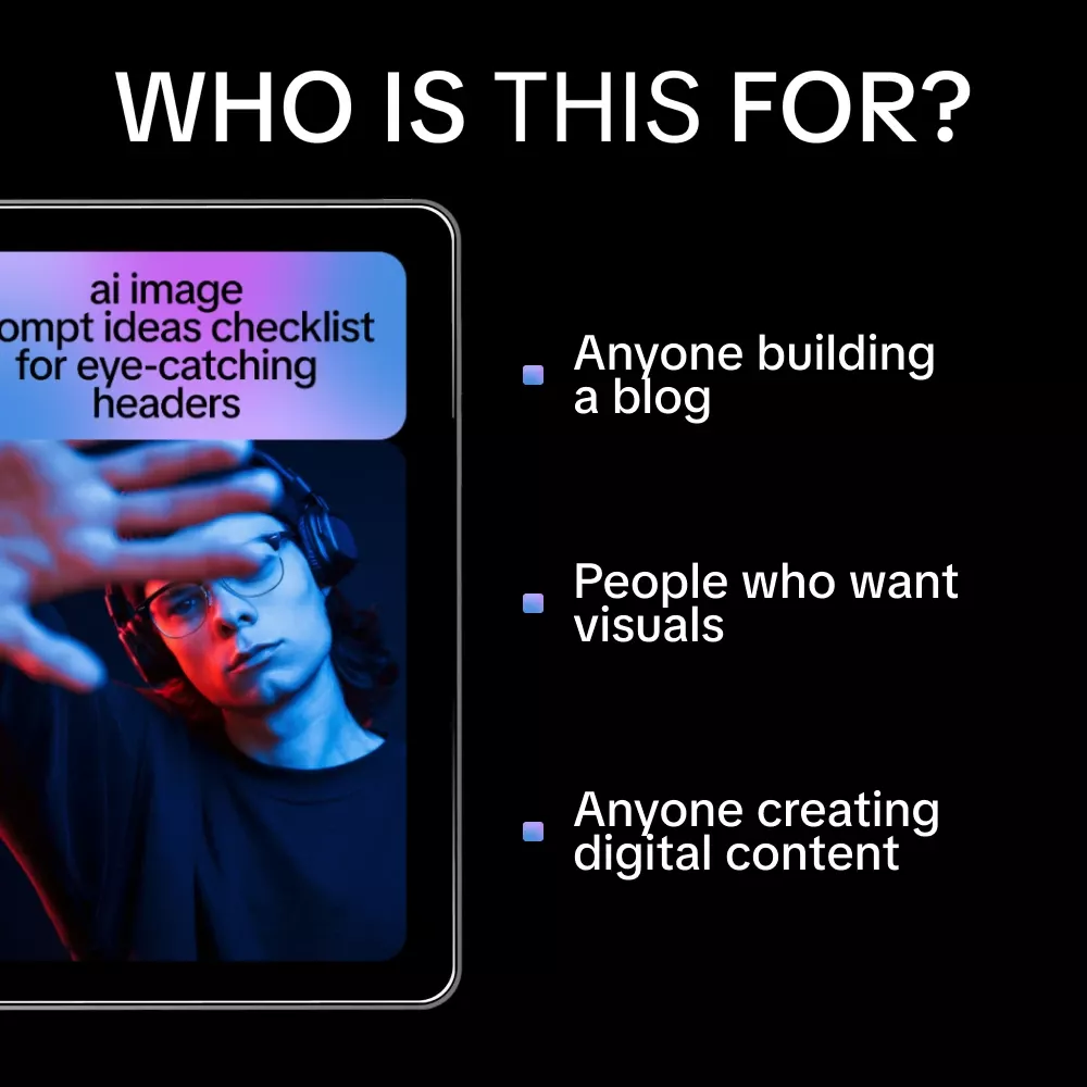 If you’re ready to stop guessing and start creating eye-catching blog headers with ease, download the AI Image Prompt Ideas Checklist for Eye-Catching Headers today. Add it to your digital toolkit and turn every blog post into a visual standout.