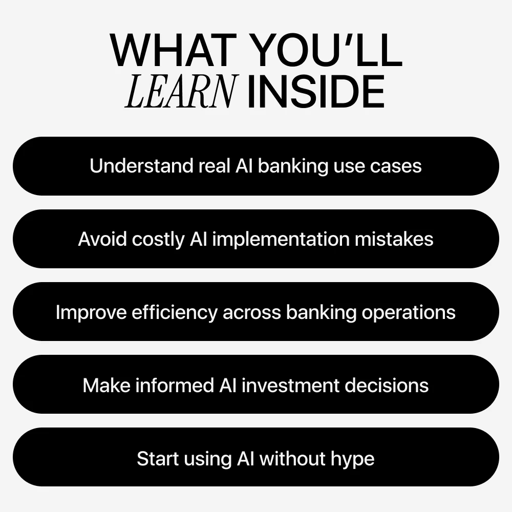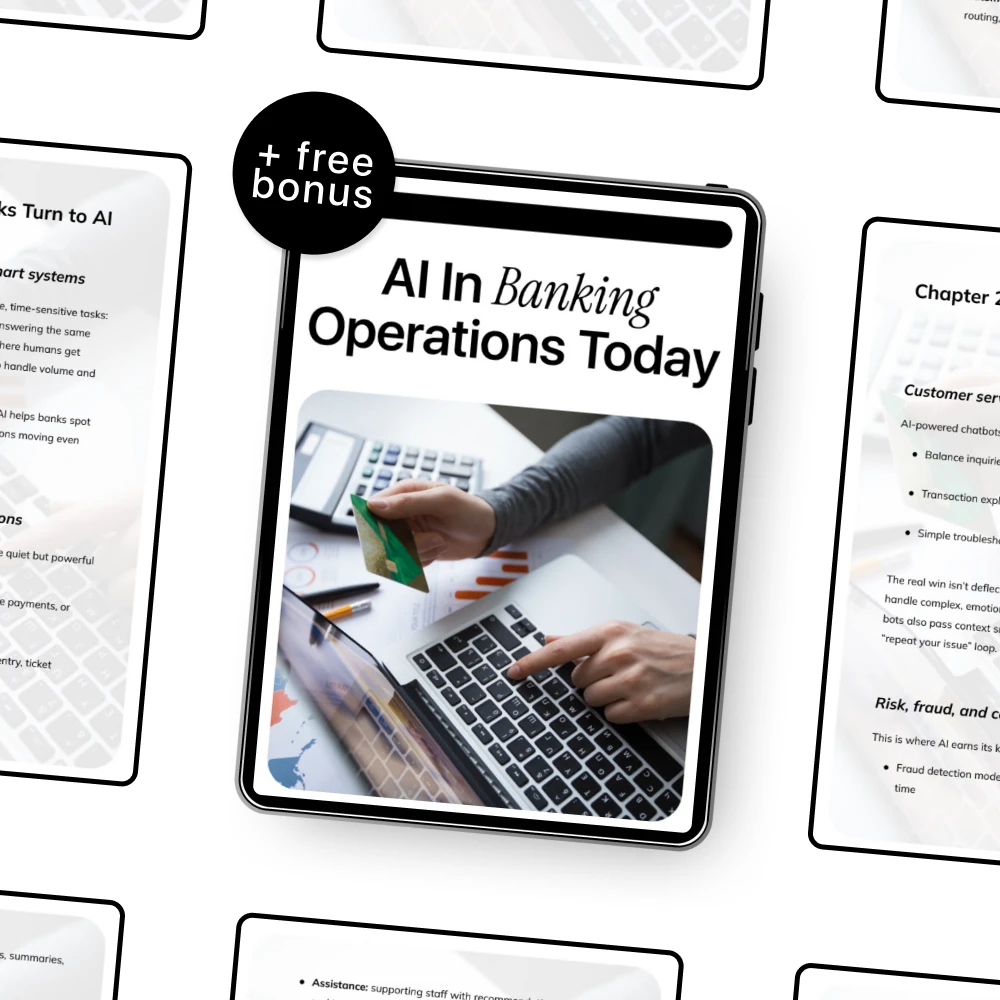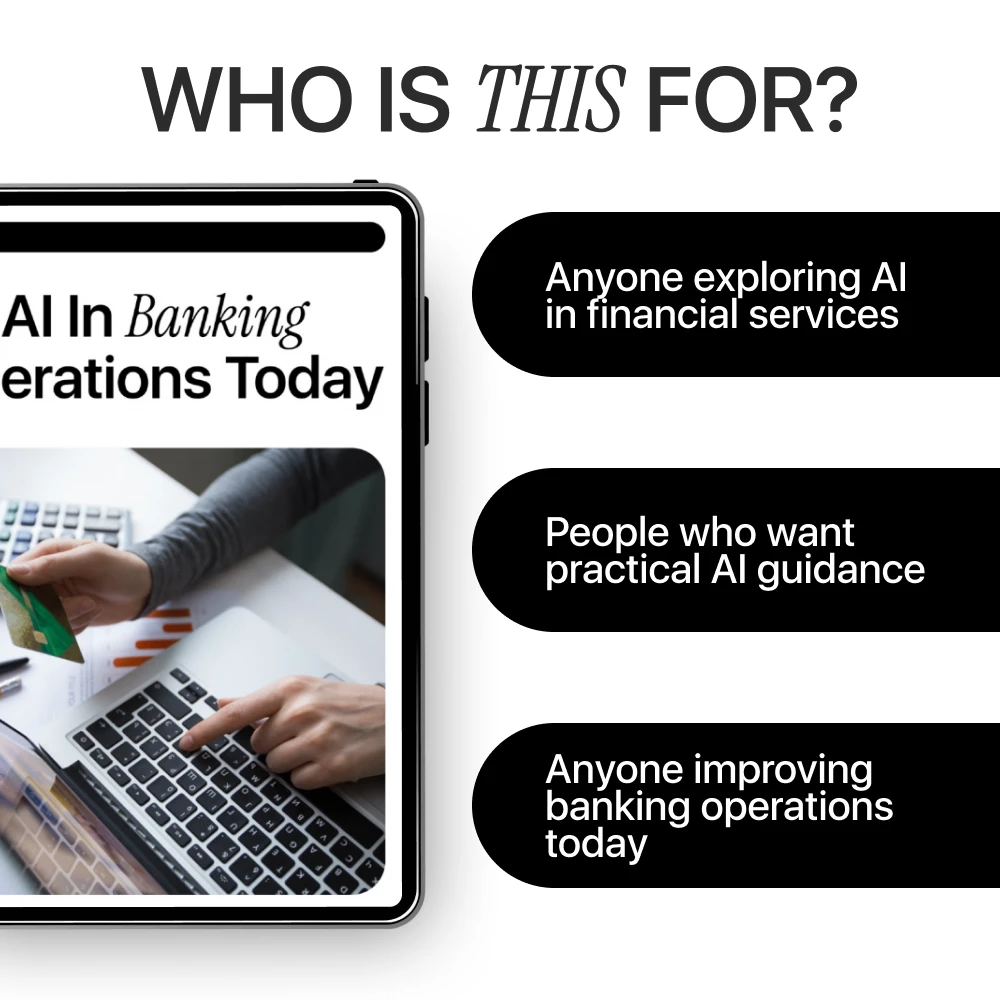 This downloadable guide is structured for busy professionals who need insights they can actually use. It walks you through how AI fits into modern banking operations today, with examples and lessons drawn from real-world scenarios.