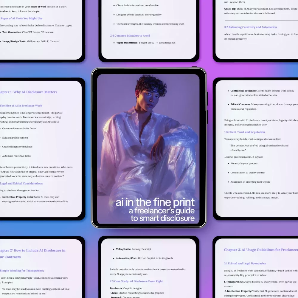 If you want to use AI responsibly, professionally, and transparently, this guide is for you. Download AI in the Fine Print: A Freelancer’s Guide to Smart Disclosure today and take the guesswork out of ai disclosure in freelance contracts—so you can focus on doing great work with confidence.
