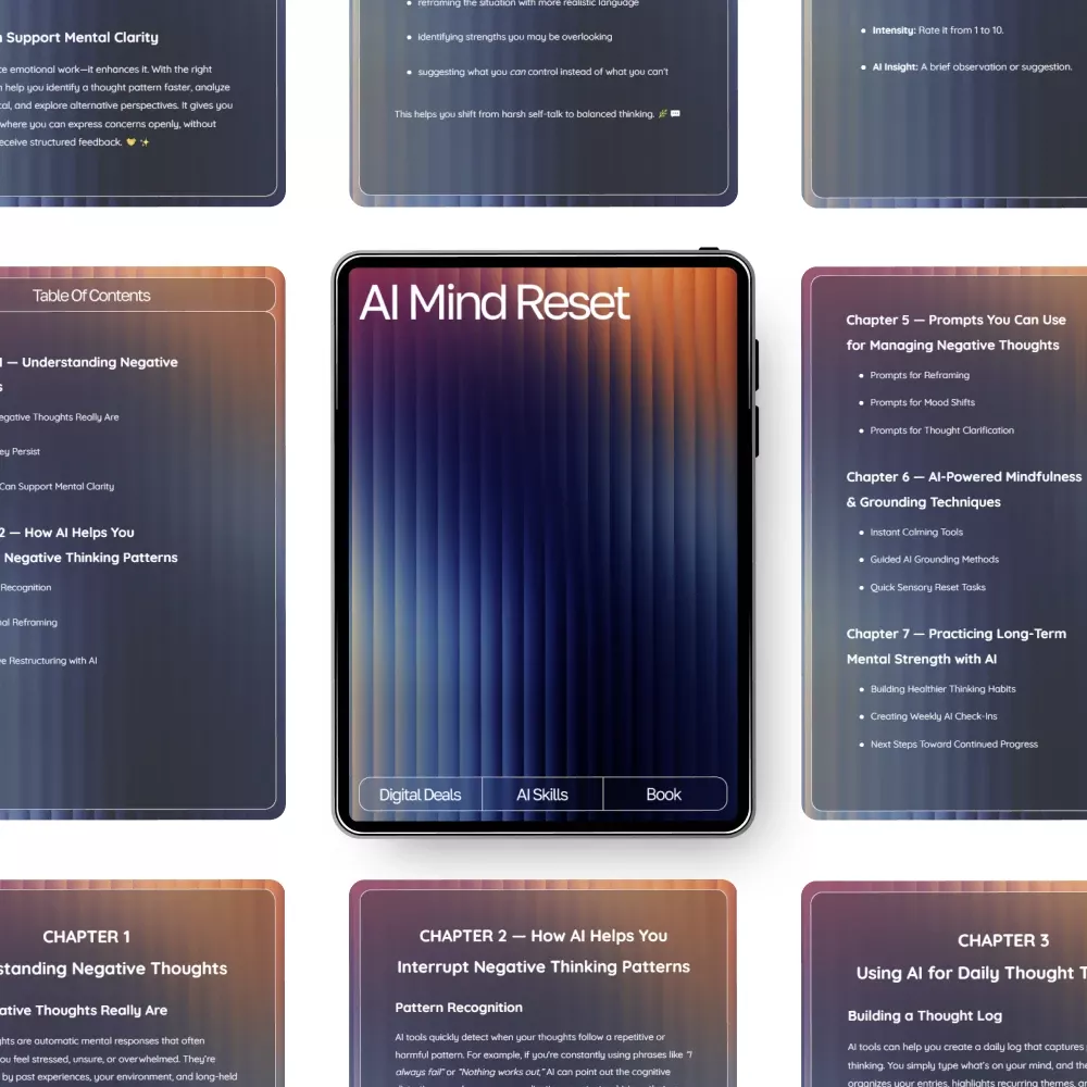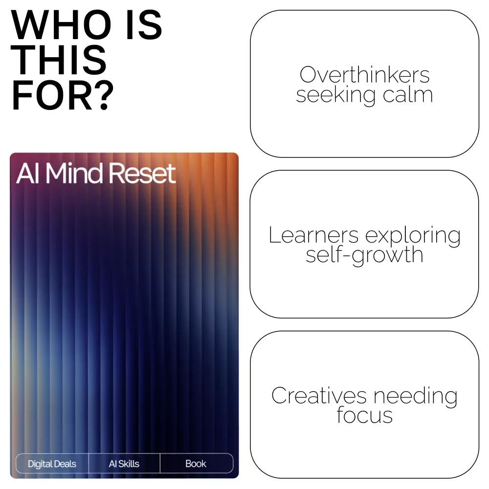 This eBook is perfect for anyone seeking calm and balance in their everyday thoughts — from students and creatives to anyone navigating stress or burnout. If you want to make technology part of your mental wellness routine, AI Mind Reset gives you a clear roadmap to do it safely and effectively.