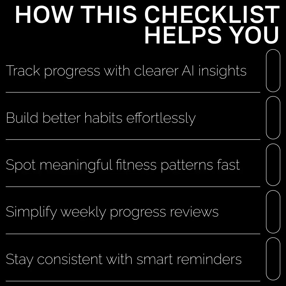 Perfect for gym-goers, runners, home exercisers, beginners, busy professionals, and anyone committed to better habits. If you want a simple, structured way to pair your efforts with an ai tool for tracking fitness progress, this checklist is for you.