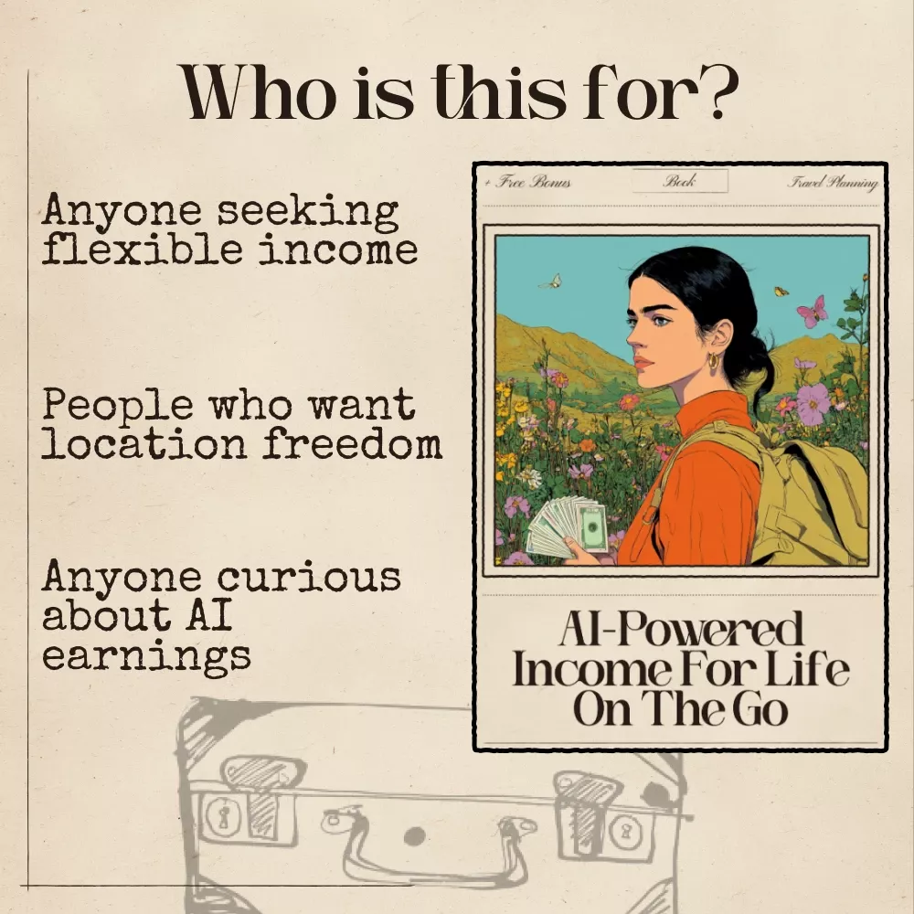 Unlike generic travel-income guides, this resource focuses entirely on practical, real-world ways AI can streamline your workflow, speed up earning, and help you build sustainable income streams anywhere. It’s simple, actionable, and crafted specifically for people who want to leverage ai for earning money while traveling without needing technical skills.