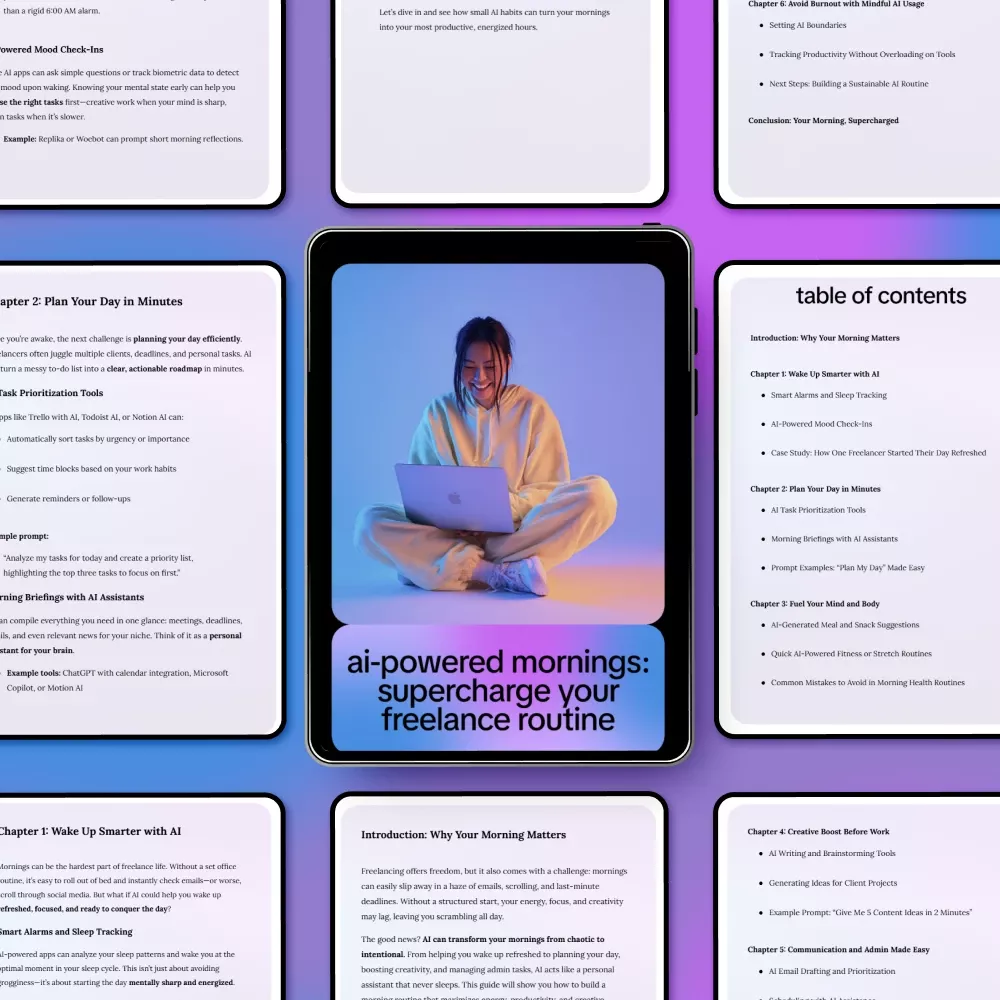 If you’re ready to stop wasting mornings and start your workdays with clarity and momentum, AI-Powered Mornings: Supercharge Your Freelance Routine is your next essential download. Add it to your cart now and build a morning routine that actually works for you.