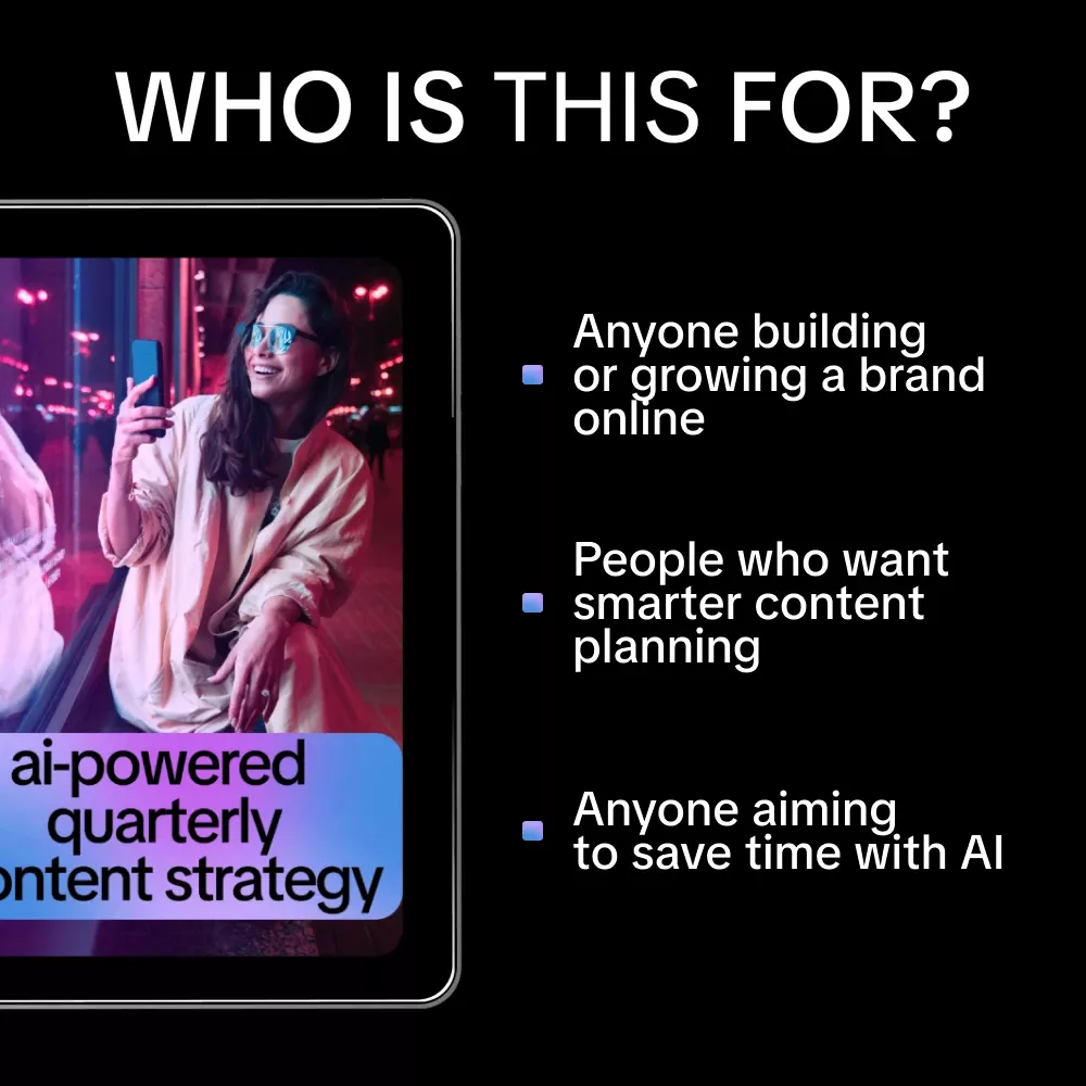 Ready to revolutionize your marketing and content workflow? The AI-Powered Quarterly Content Strategy guide is your ultimate digital download to master quarterly content planning effortlessly. Designed for marketers, entrepreneurs, and content creators, this guide shows you exactly how to use AI to generate a quarterly content strategy that saves time, drives engagement, and delivers measurable results. Whether you’re building a new brand or scaling an existing one, this resource gives you the tools to create a structured, high-performing 90-day content plan with confidence.