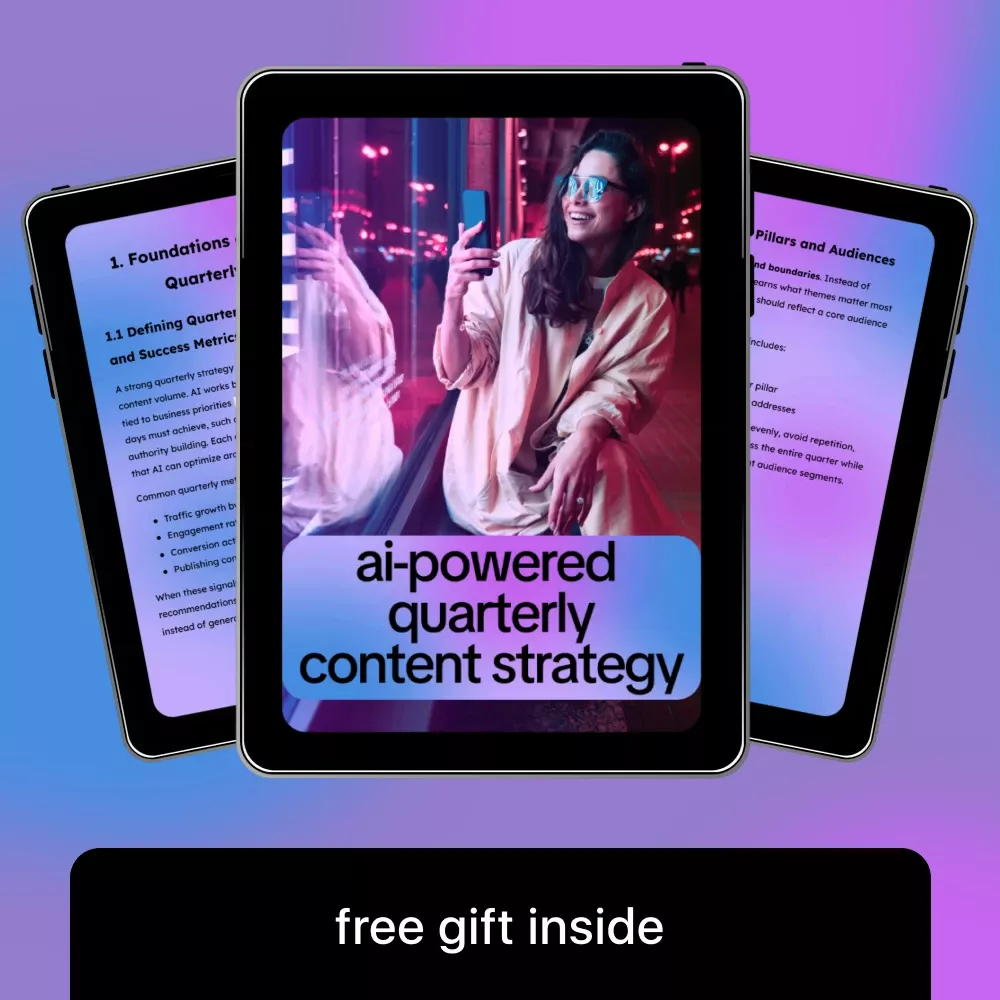 • Foundations of an AI-Driven Quarterly Strategy: Learn how to define quarterly goals, success metrics, and map content pillars to your audiences.