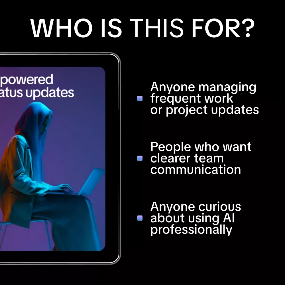 This ebook is ideal for professionals, project managers, freelancers, team leaders, and business owners who write frequent updates and want them to be more effective. If you’ve ever wondered how to use ai to write status updates that still feel personal and aligned with your goals, this guide was created for you.