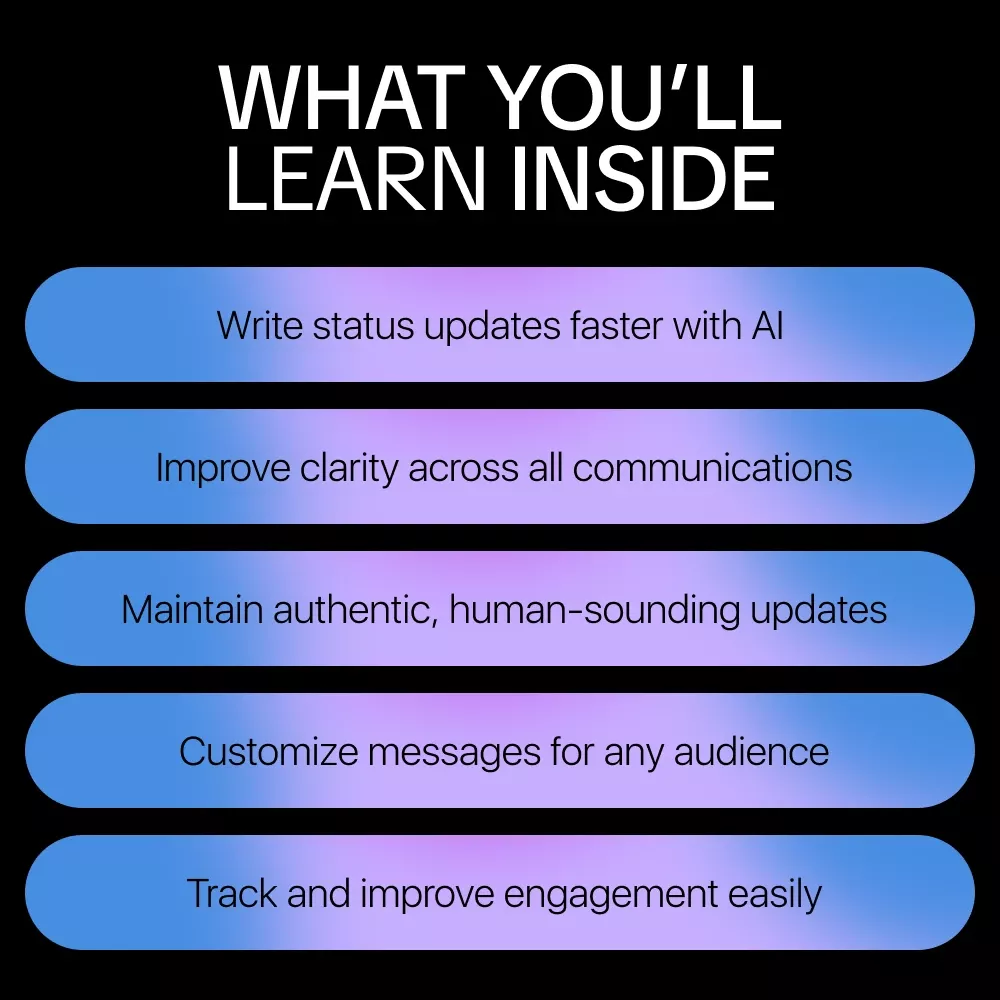 Stop overthinking every update and start communicating with confidence. Download AI-Powered Status Updates today and master how to use ai to write status updates that are clear, professional, and impactful—every single time.