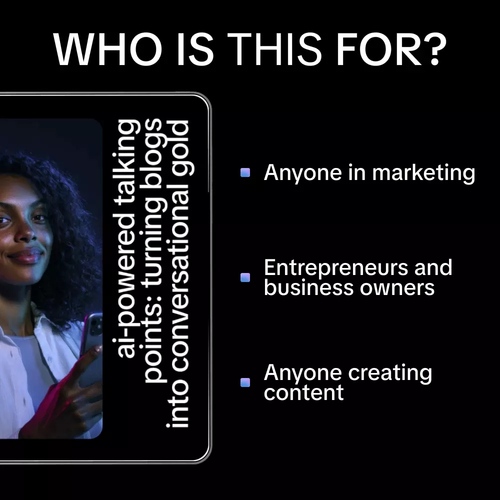 This eBook is perfect for marketers, business owners, consultants, client managers, and anyone looking to elevate their content into actionable talking points. If you want to maximize the value of your blog posts and make every client interaction count, this guide is tailored for you.