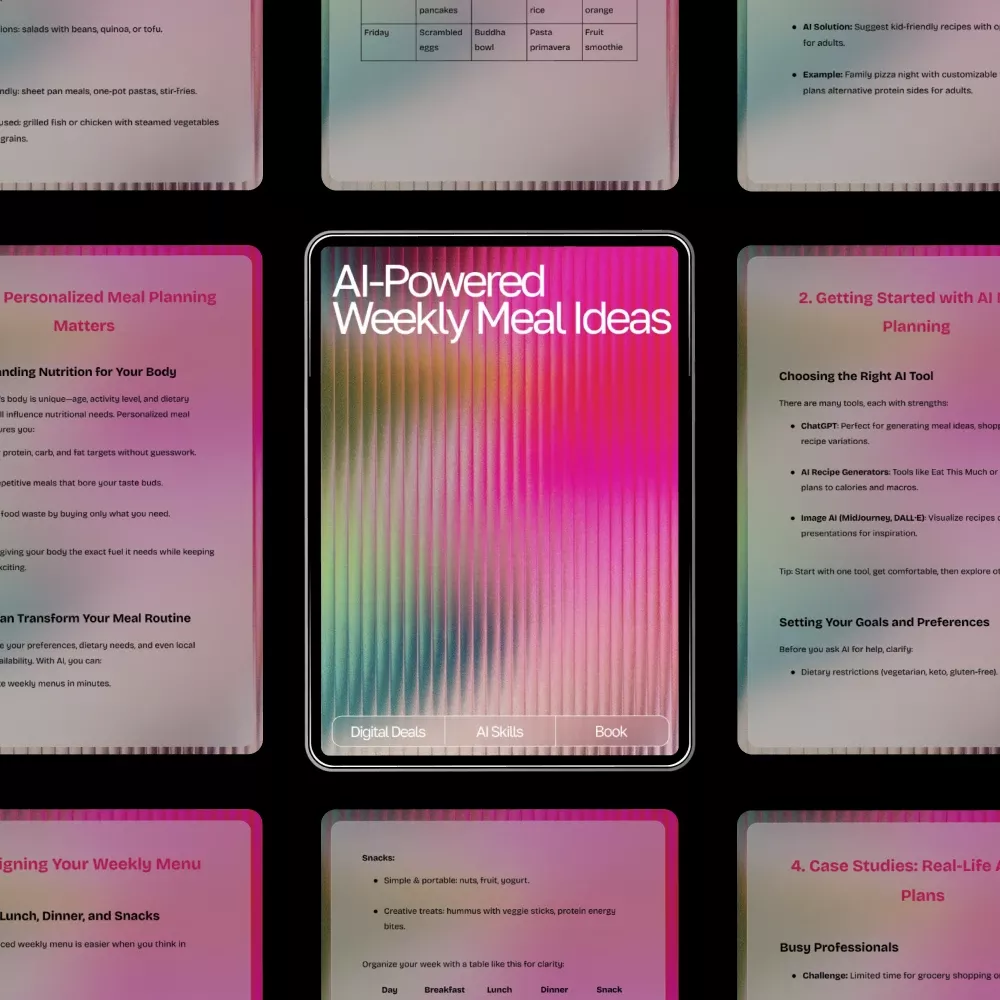 This eBook is ideal for anyone who wants smarter, simpler meal planning. Whether you’re managing a household, counting macros, or exploring plant-based options, AI-Powered Weekly Meal Ideas will show you how to use ai personalized weekly meal ideas to create custom menus that fit your real life—without overwhelm or confusion.