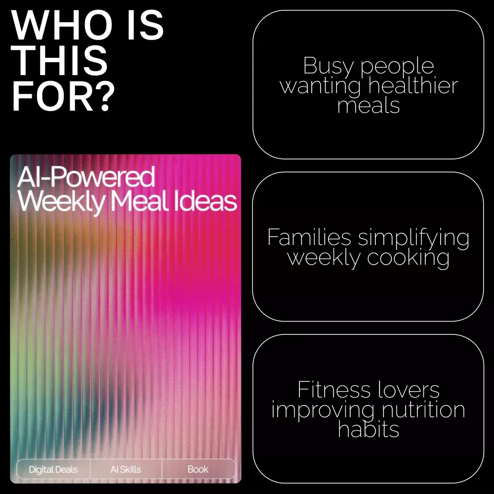 Transform your daily meal routine with AI-Powered Weekly Meal Ideas—a practical, easy-to-follow eBook designed to make meal planning effortless. Whether you’re a busy parent, a health-conscious foodie, or someone tired of repeating the same meals every week, this guide shows you how to use ai personalized weekly meal ideas to simplify your life. Learn how AI can suggest balanced, delicious menus that fit your goals, time, and taste—while helping you save money, reduce food waste, and rediscover joy in cooking.