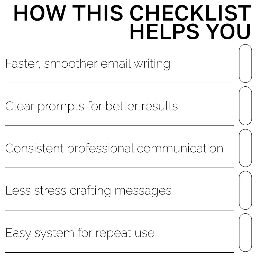 This checklist is ideal for business owners, online sellers, service providers, job seekers, virtual assistants, creators, and anyone who wants consistent ai prompts for email writing help. If you rely on email to communicate, nurture leads, or make sales, this tool will elevate your workflow instantly.