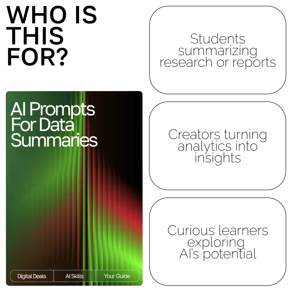 Download “AI Prompts for Data Summaries” today and start turning complex information into simple, actionable insights. Perfect your data storytelling and make your numbers speak with confidence.