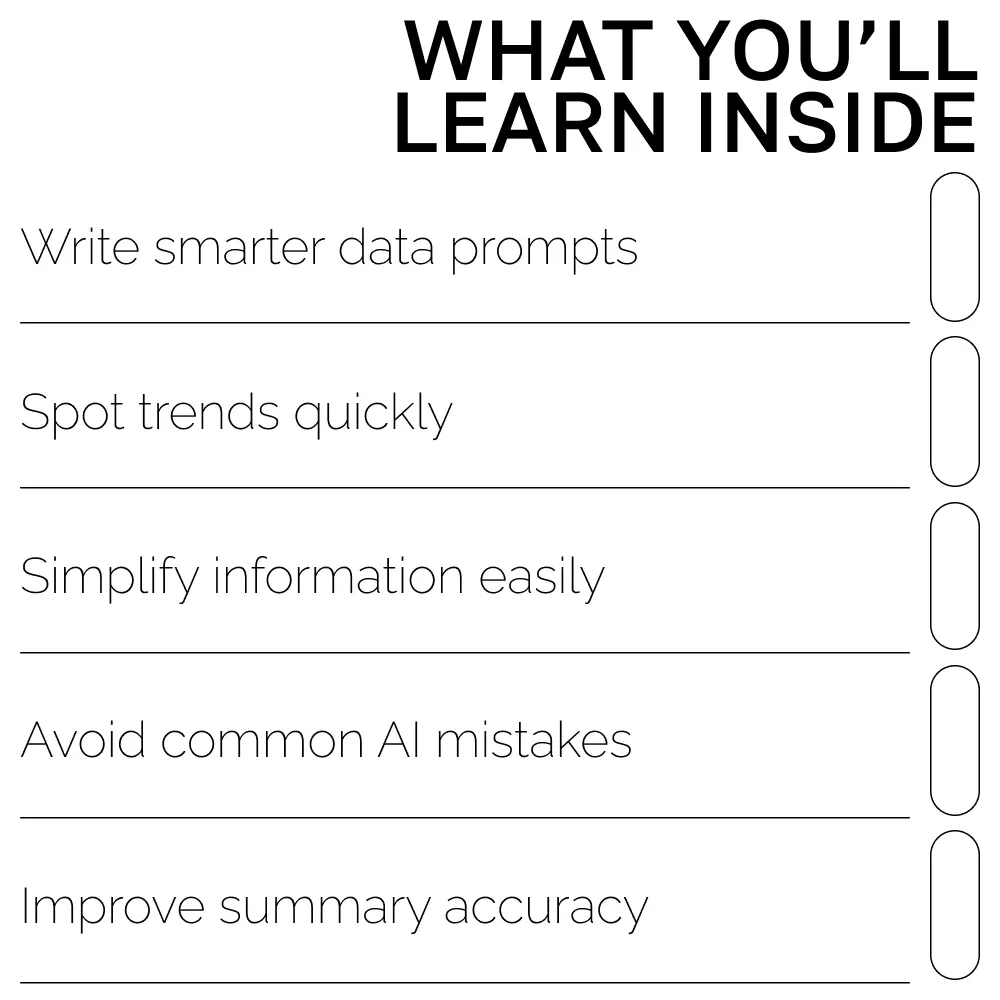 Unlike generic AI prompt lists, this guide focuses specifically on real-world data use cases. Each section gives you structured examples, easy templates, and clear strategies you can apply instantly. It bridges the gap between technical AI tools and everyday understanding—so you can summarize smarter, not harder.