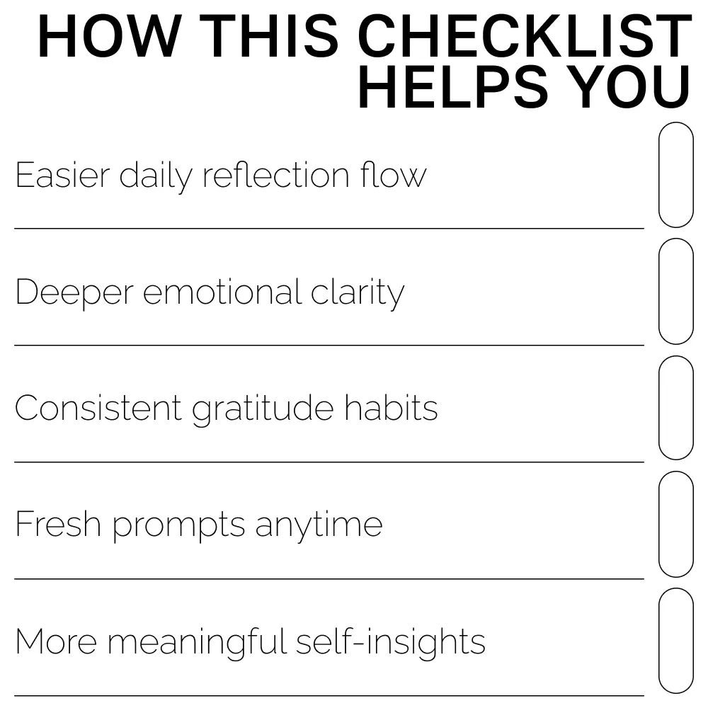 Unlike generic journaling guides, this checklist blends human intention with AI creativity—helping you uncover perspectives you may not have considered while keeping your reflection deeply personal. It’s streamlined, actionable, and designed to help you see results from day one.