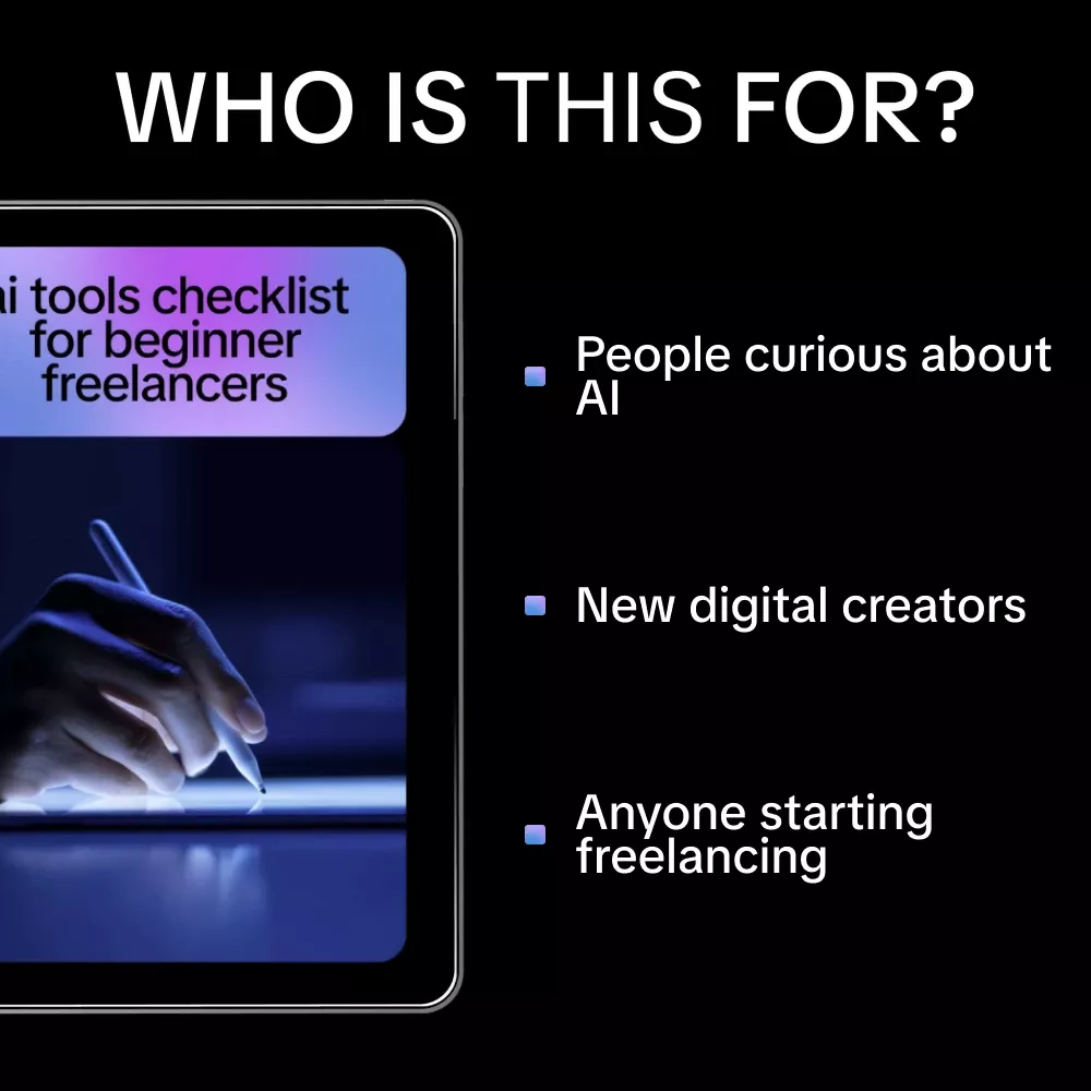This checklist is perfect for beginner freelancers, side hustlers, creatives, virtual assistants, writers, designers, and anyone curious about using ai tools for beginner freelancers without technical jargon. No prior AI experience is required.