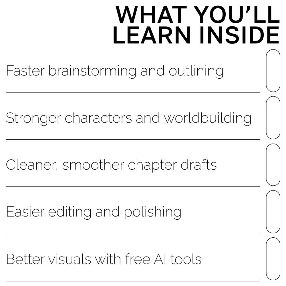 - Chapter 4: Going Beyond Words – How to create illustrations, covers, and visuals using AI, plus publishing and promotion steps.
