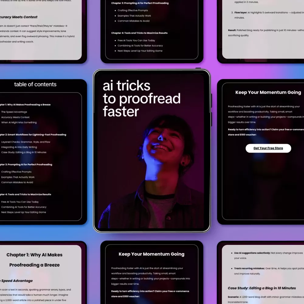 If you’re ready to proofread with confidence and finally speed up your writing process, AI Tricks to Proofread Faster is your next must-have resource. Download the guide today and start using AI the smart way from your very next draft.