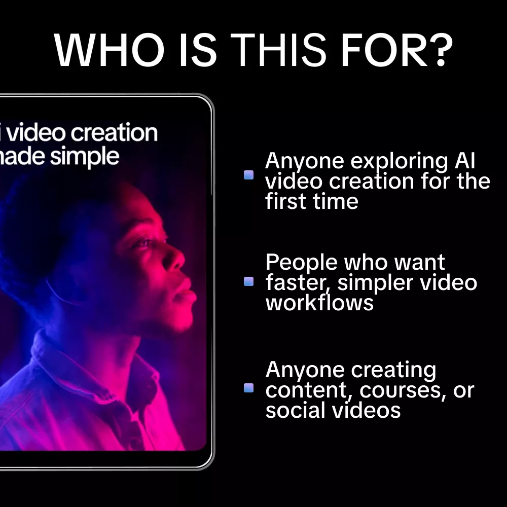 This guide is perfect for content creators, small business owners, marketers, educators, and beginners who want to use AI video tools effectively. If you’ve felt overwhelmed by AI video software or unsure how to get good results, this guide was made for you.