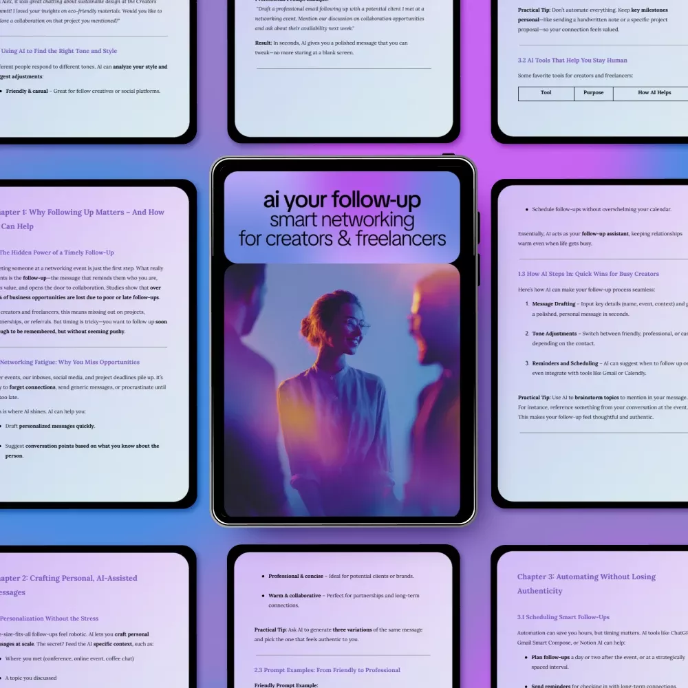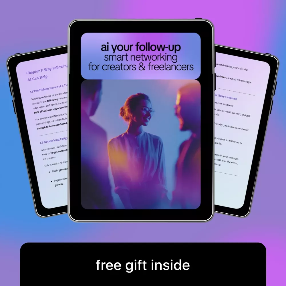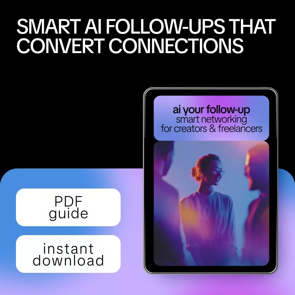 If you’re ready to stop letting great connections fade away, this guide gives you a clear, repeatable system you can start using today. Download AI Your Follow-Up: Smart Networking for Creators & Freelancers now and make your next follow-up the one that actually leads somewhere.
