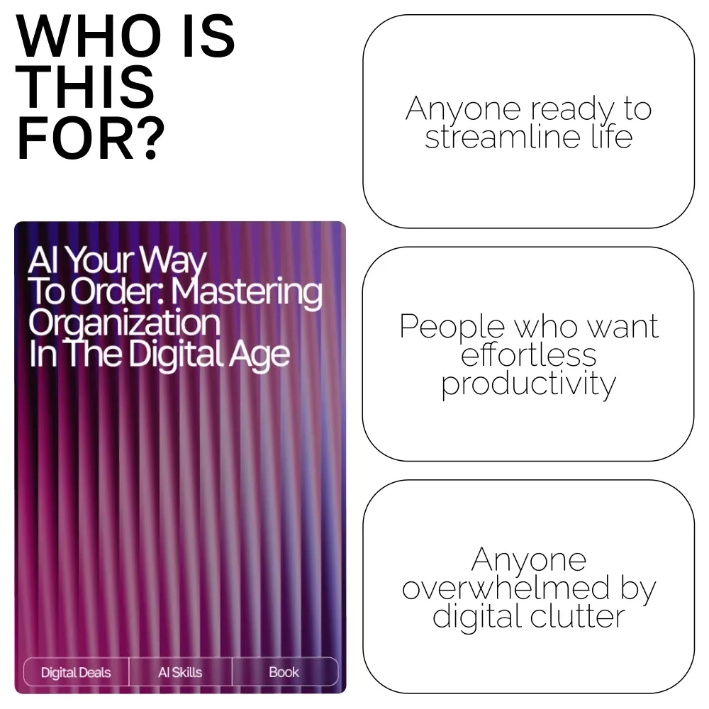 Ready to finally break free from chaos and streamline your life? Download AI Your Way to Order: Mastering Organization in the Digital Age today and start transforming your routines with the power of AI.