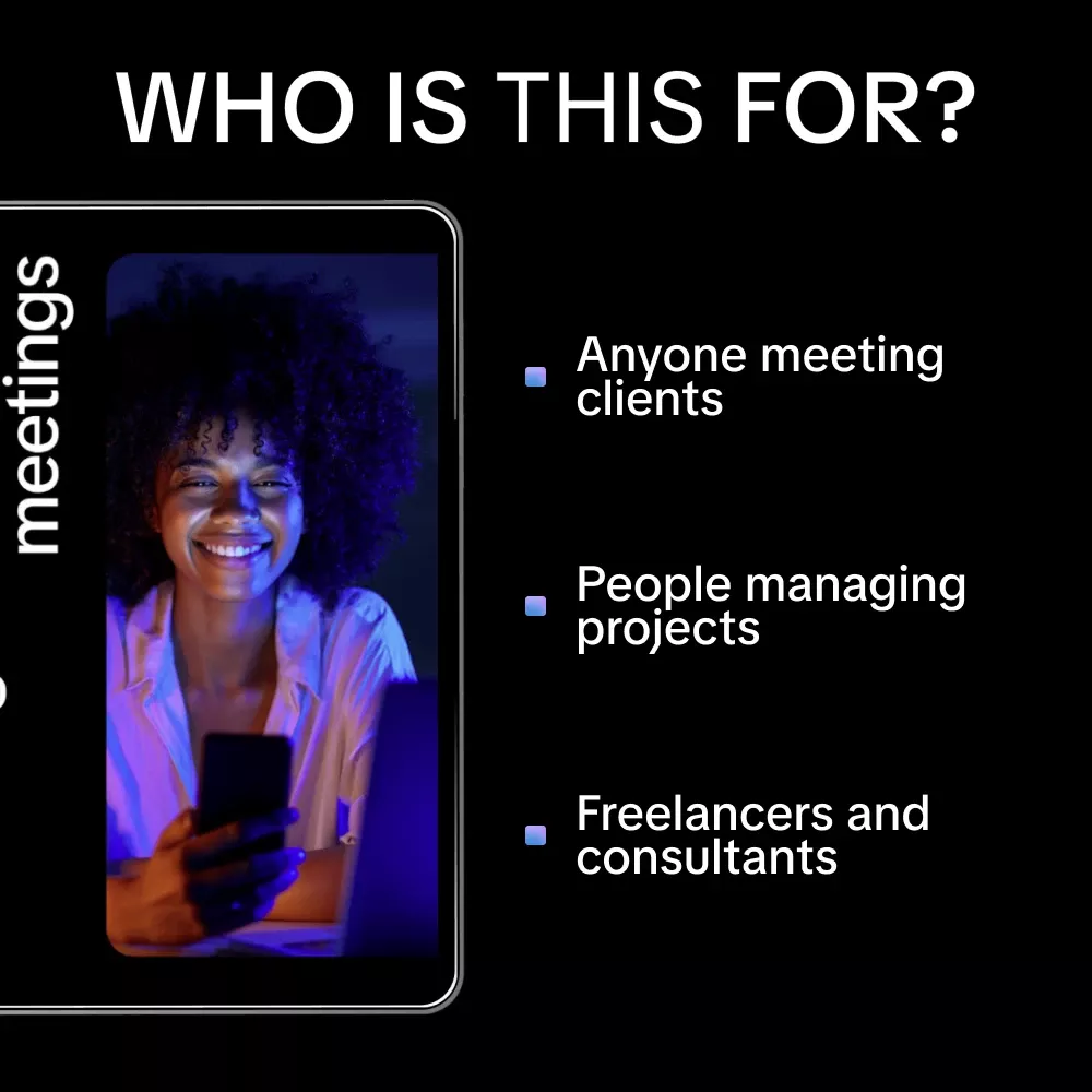 This ebook is perfect for freelancers, designers, consultants, account managers, and anyone who regularly meets with clients. If you want to stop feeling unprepared, reduce meeting stress, and make every client interaction productive, this guide is tailored for you.