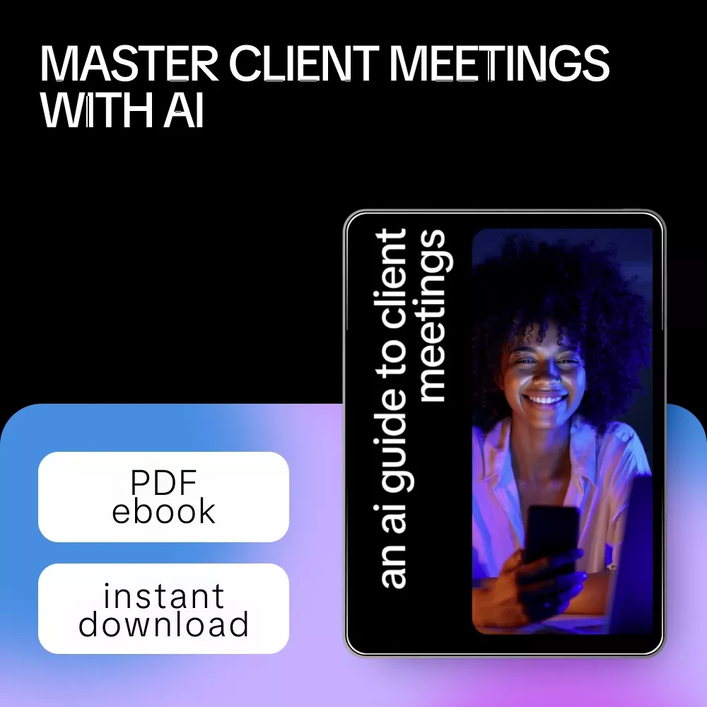 Step into your next client meeting fully prepared, confident, and ready to impress with An AI Guide to Client Meetings. This comprehensive ebook shows you exactly how to harness the power of AI to prepare for client meetings, from clarifying the brief to translating your work into client-friendly language. No more wasted time, awkward pauses, or missed opportunities—just focused, productive conversations that get results. Designed for professionals who want smarter preparation without extra stress, this guide makes AI an essential partner in every stage of your client interactions.