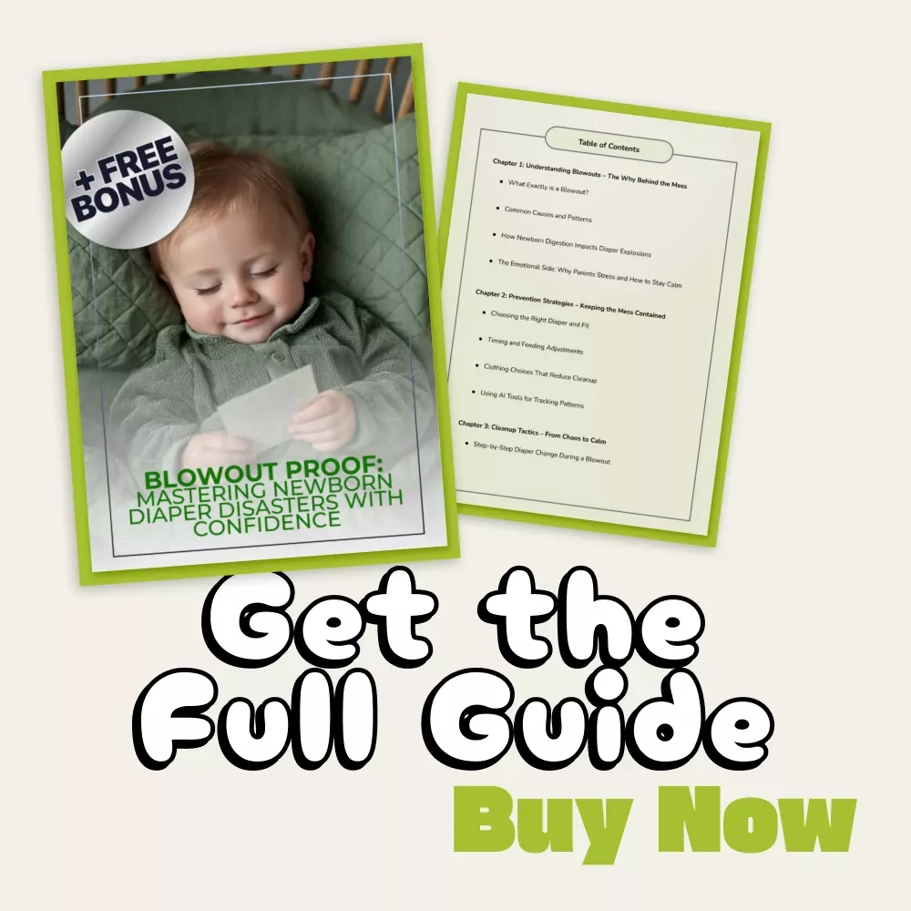 Unlike generic parenting eBooks, Blowout Proof blends real-life parenting insights with modern tools — including how to use AI for pattern tracking and predictive care. It’s written in a friendly, no-judgment tone that helps you feel supported and capable, even at 3 a.m. when disaster strikes.
