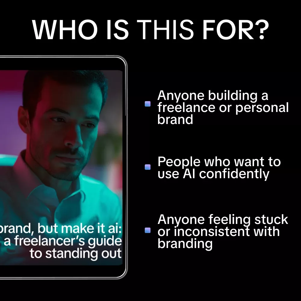 This AI branding guide for freelancers is perfect for creatives, consultants, coaches, and online service providers who want to stand out in a crowded market. It’s ideal for beginners, solo freelancers, and anyone tired of guessing how to brand themselves online.