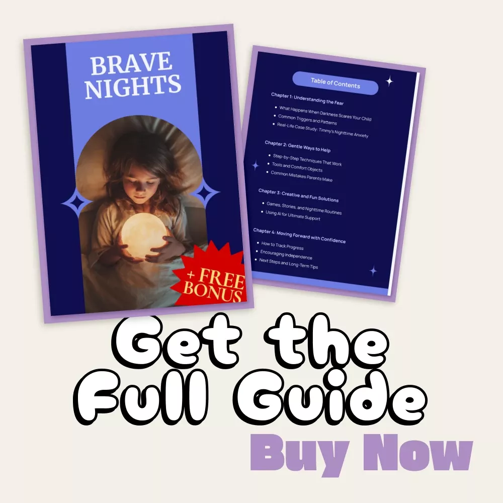 Does your child struggle with fear when the lights go out? Brave Nights is your go-to digital guide on how to handle child’s fear of the dark. This beautifully written and easy-to-follow resource helps parents transform stressful nights into calm, comforting routines. Whether your child fears monsters, shadows, or simply the unknown, this guide offers compassionate, proven strategies to build courage, security, and independence—one bedtime at a time.