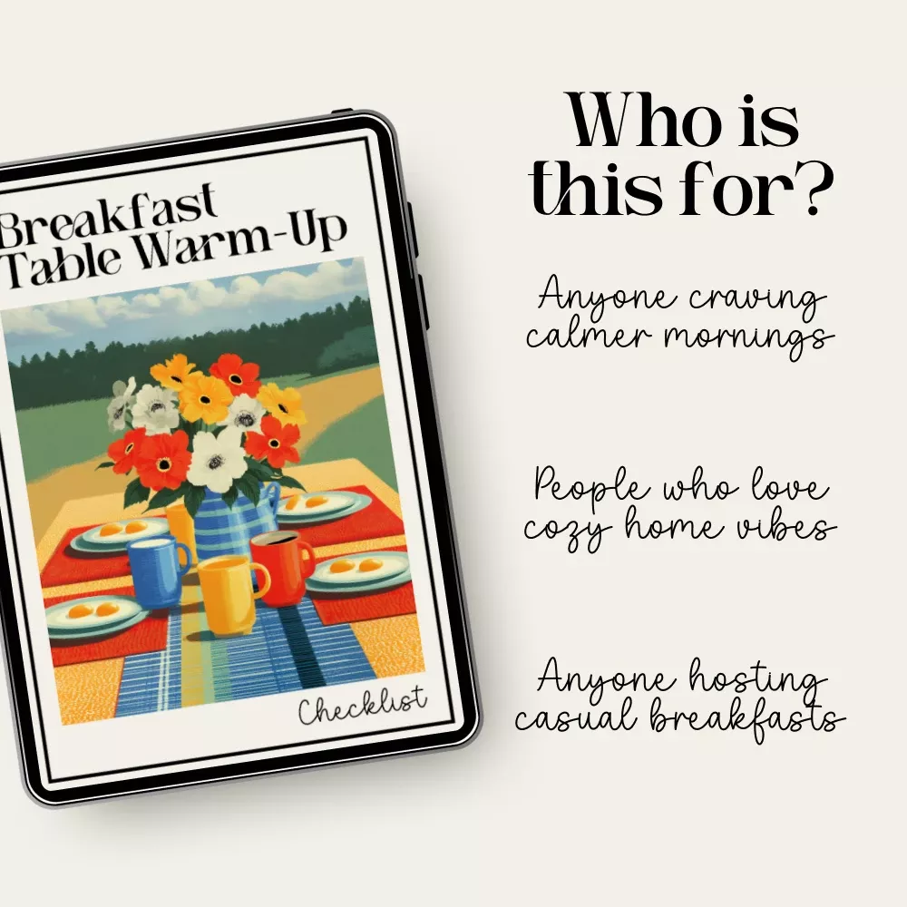 Ready to transform your mornings and finally master how to style a cozy breakfast table? Download the Breakfast Table Warm-Up Checklist today and start creating calm, beautiful breakfast moments at home.