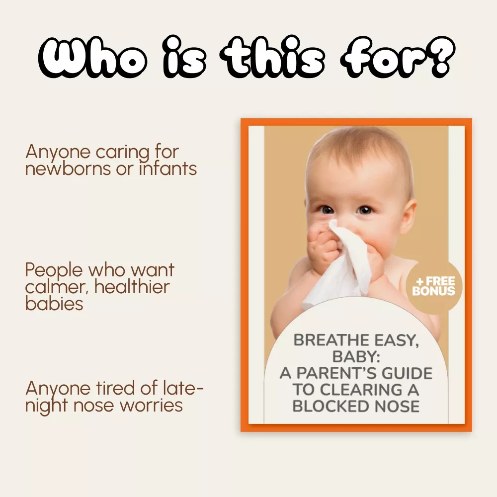 This digital download is made for parents, caregivers, and anyone who wants to know how to clear baby’s blocked nose safely and confidently. If you want peace of mind and practical guidance backed by real-world experience, this guide is your essential companion.