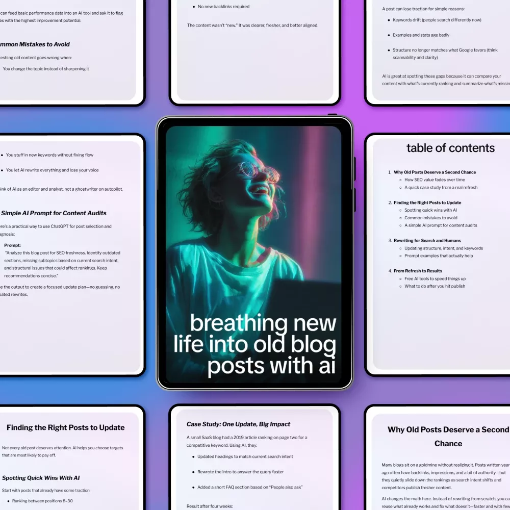 If you’re ready to stop letting valuable blog posts collect dust and start turning them into traffic drivers again, download Breathing New Life Into Old Blog Posts With AI today and start seeing results faster — using content you already have.