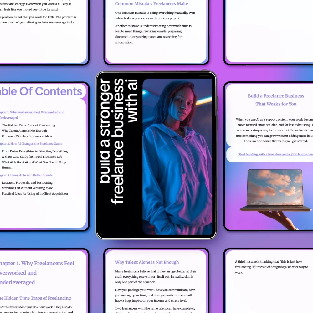 Stop working harder just to stay afloat. Download Build a Stronger Freelance Business with AI today and start building a smarter, calmer, more profitable freelance business.