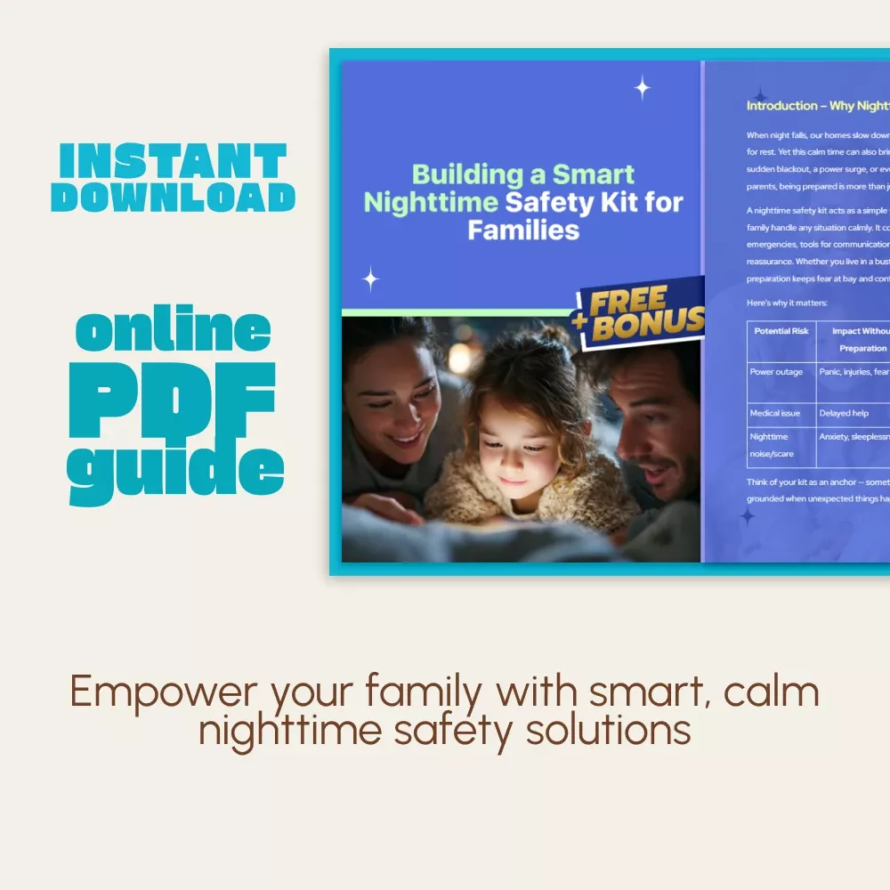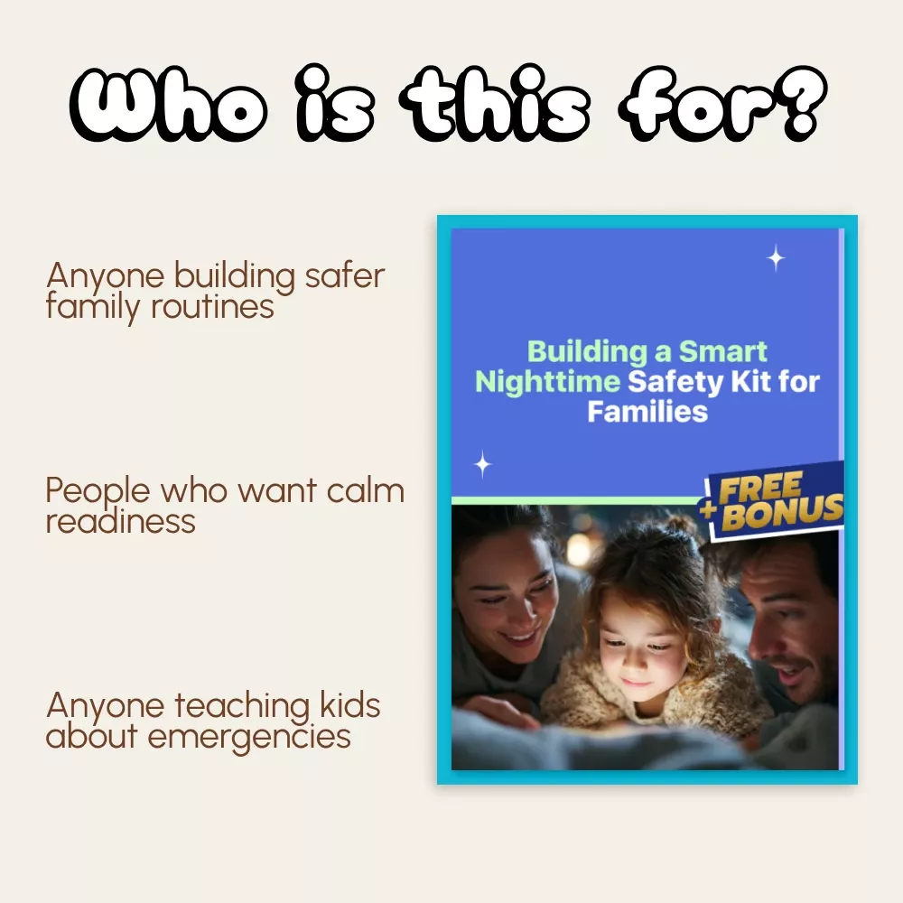 Don’t wait for an emergency to discover what your family truly needs at night. Download Building a Smart Nighttime Safety Kit for Families today and start building a calm, confident, and prepared home tonight. Your family’s peace of mind starts here!