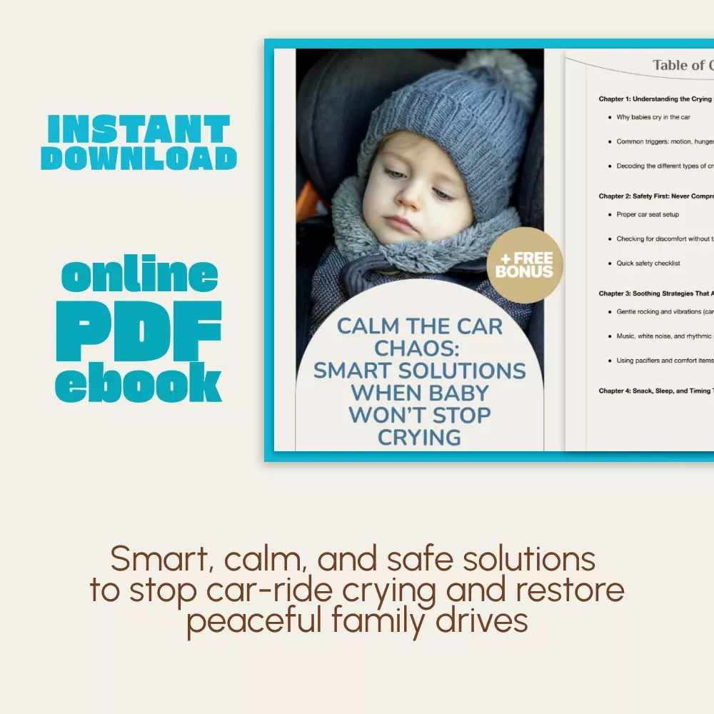 Turn chaos into calm with Calm the Car Chaos: Smart Solutions When Baby Won’t Stop Crying. Download your copy today and enjoy a smoother, quieter ride—because both you and your baby deserve peaceful travels.