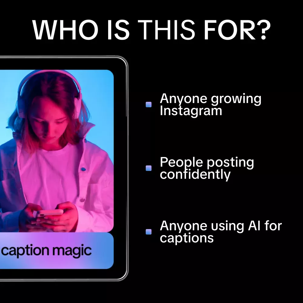 Caption Magic is perfect for content creators, small business owners, social media managers, and anyone looking to elevate their Instagram game. Whether you’re new to social media or a seasoned pro, this checklist provides clear steps and AI-powered insights to make every caption count.